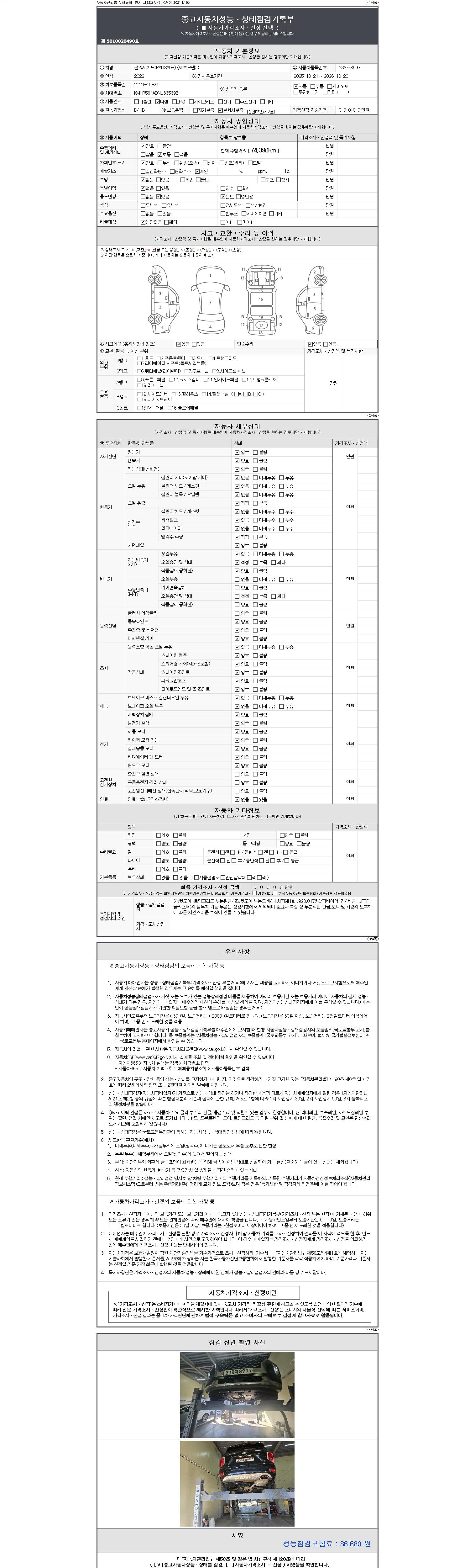 - 2. 차량 등록증이나 성능점검지 등을 상담자에게 요청및 확인하시고 사전에 미리 점검 하시기를 권유드립니다.