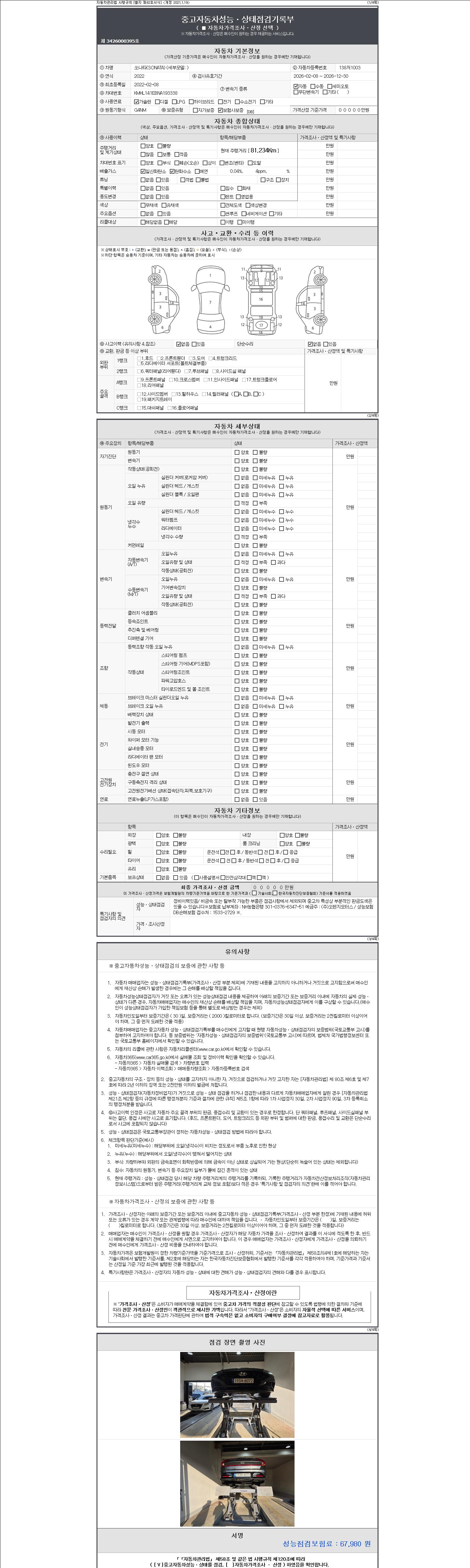 - 2. 차량 등록증이나 성능점검지 등을 상담자에게 요청및 확인하시고 사전에 미리 점검 하시기를 권유드립니다.